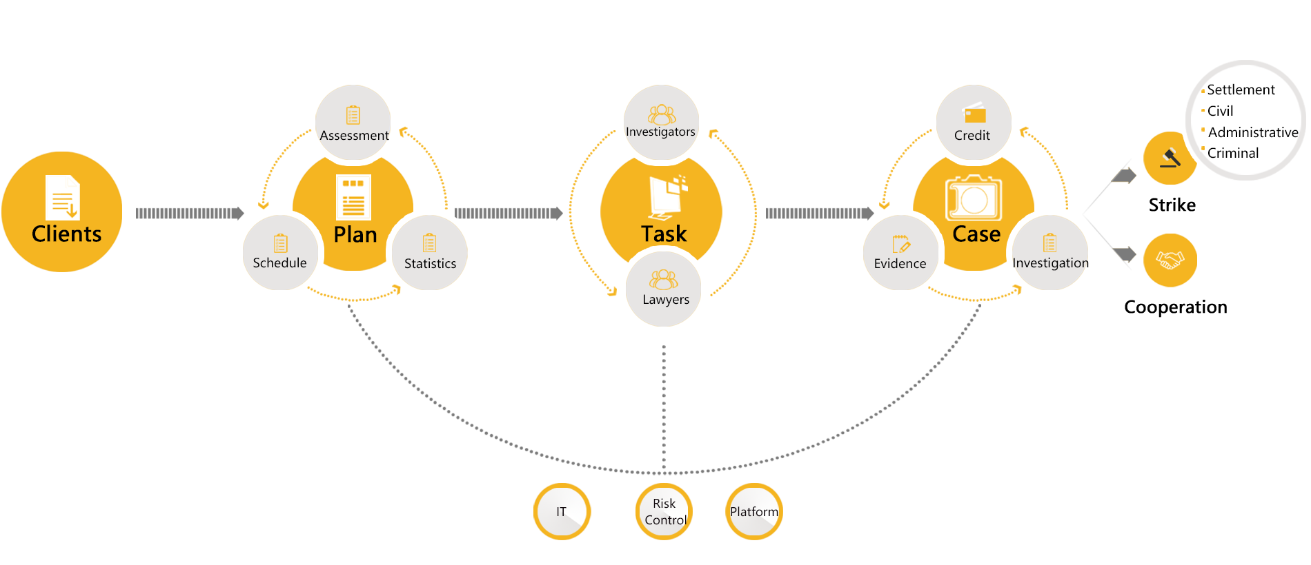Our approach spans both online and offline environments in order to provide the best services in IP protection.